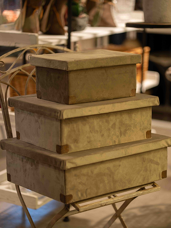 Set x3 cajas de madera con pana