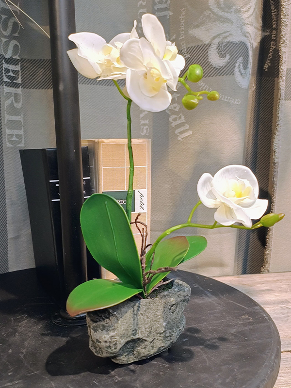 Orquidea en maceta de piedra